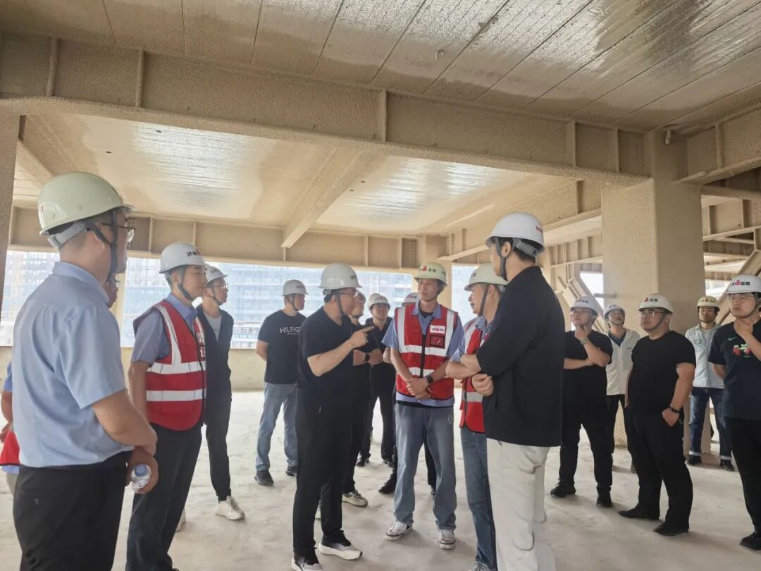 隨后,在總監(jiān)的帶領下,全體人員觀摩了項目現(xiàn)場。由總監(jiān)、各位監(jiān)理工程師向大家講解該項目鋼結構施工過程和控制要點,大家針對本項目的鋼結構柱芯混凝土頂升法澆筑施工工藝展開熱烈的討論。