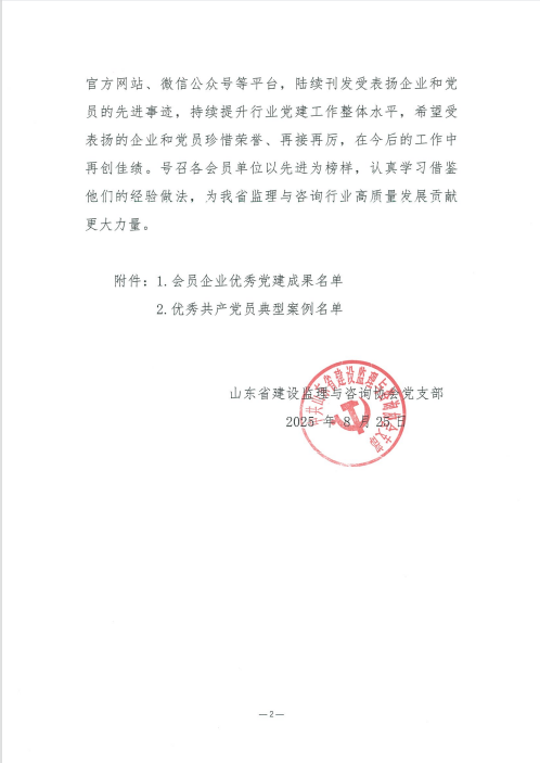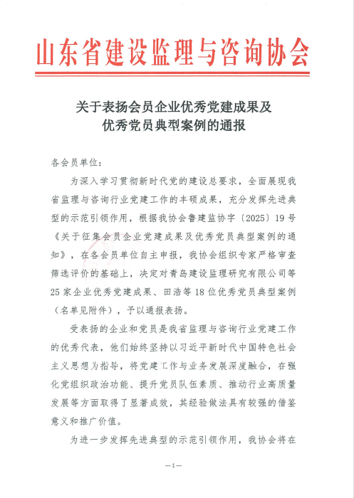 喜報(bào)!濟(jì)南監(jiān)理榮獲山東省建設(shè)監(jiān)理與咨詢協(xié)會(huì)“會(huì)員優(yōu)秀企業(yè)黨建成果”及“優(yōu)秀黨員典型案例”通報(bào)表?yè)P(yáng)